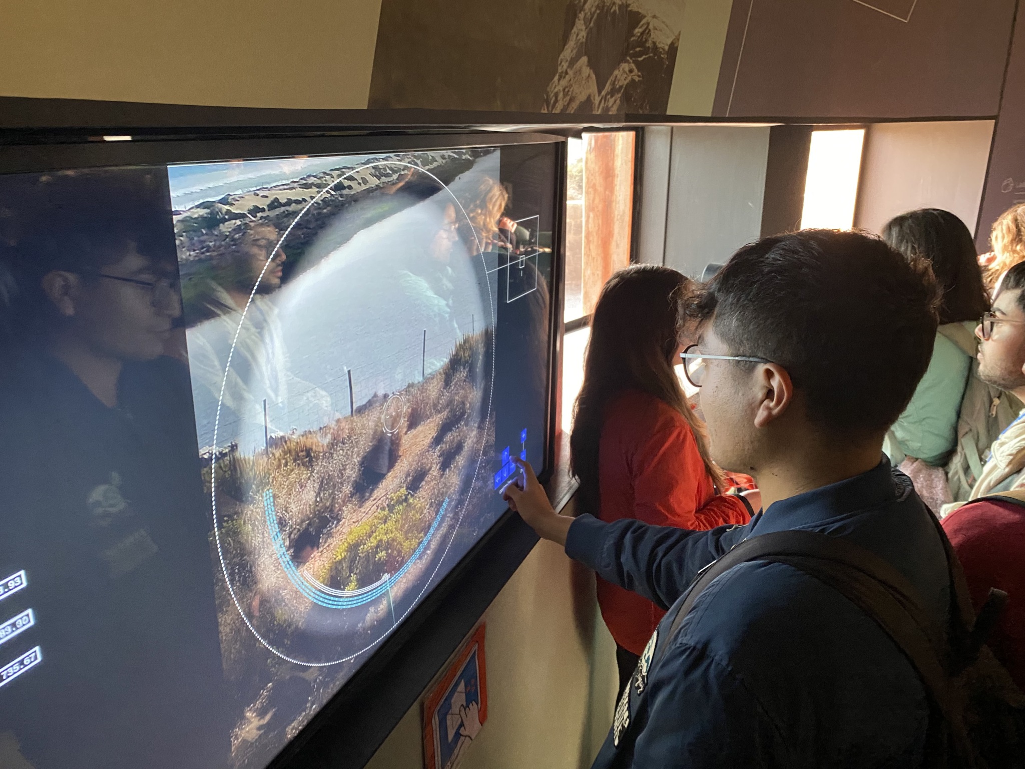 Continuaron en la Sala Circular, donde los estudiantes se interiorizaron en el proceso productivo de Minera Los Pelambres, desde la exploración hasta la exportación del mineral. Aquí reflexionaron sobre cómo se comunica la ciencia y la tecnología al público, destacando la importancia de utilizar herramientas didácticas y accesibles que faciliten la comprensión, como las pantallas interactivas, gráficas informativas y pictogramas inclusivos.